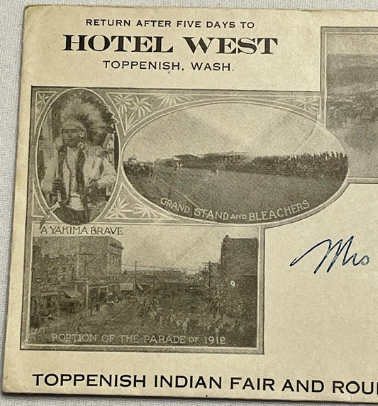 Antique 1913 Toppenish Indian Fair and Roundup September 1-7, 1913 Hotel West Advertising Postmarked EnvelopeRegular price $40.00 USDRegular priceUnit price / per-